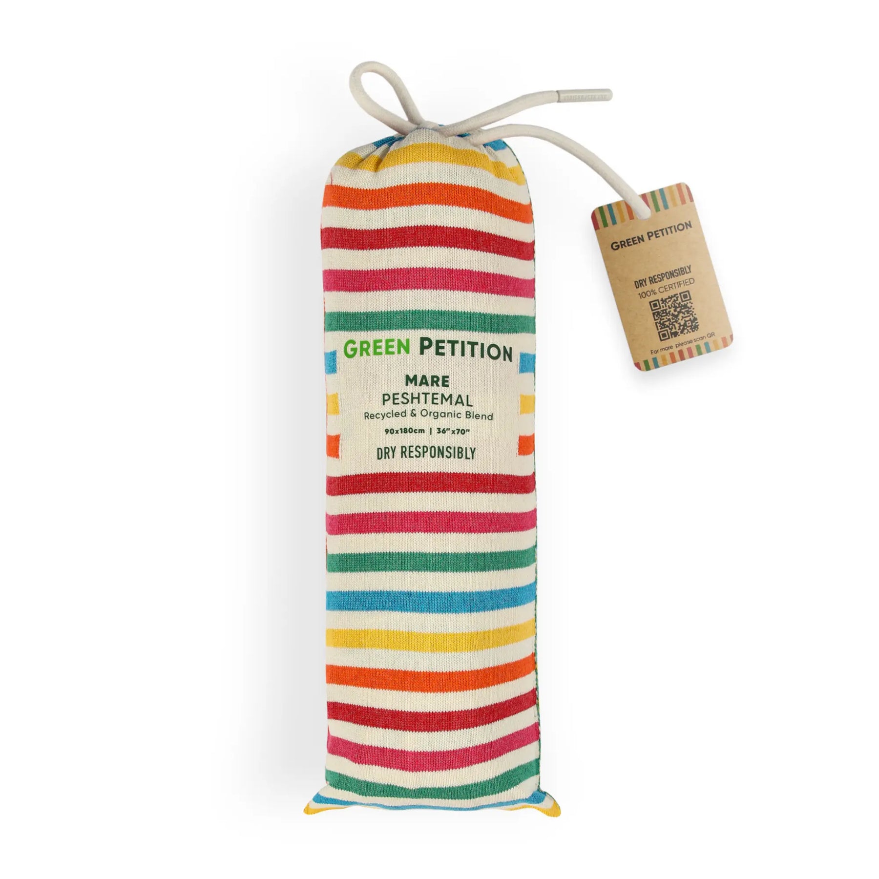Portabilidad sin esfuerzo y luminosidad orgánica: Diseñado para ser fácilmente transportable, el Mare Peshtemal es ligero y ofrece practicidad para diversas ocasiones. Ya sea usado como chal o como toalla de playa, su ligereza garantiza un transporte sencillo. El peshtemal se entrega con una bolsa reciclada que mide solo 34 x 14 cm, mejorando su portabilidad para tu comodidad. Abraza el encanto natural del Mare Peshtemal, libre de productos químicos y tintes dañinos. El color llamativo, derivado del tejido de camisetas recicladas, irradia una belleza orgánica sin comprometer la durabilidad.