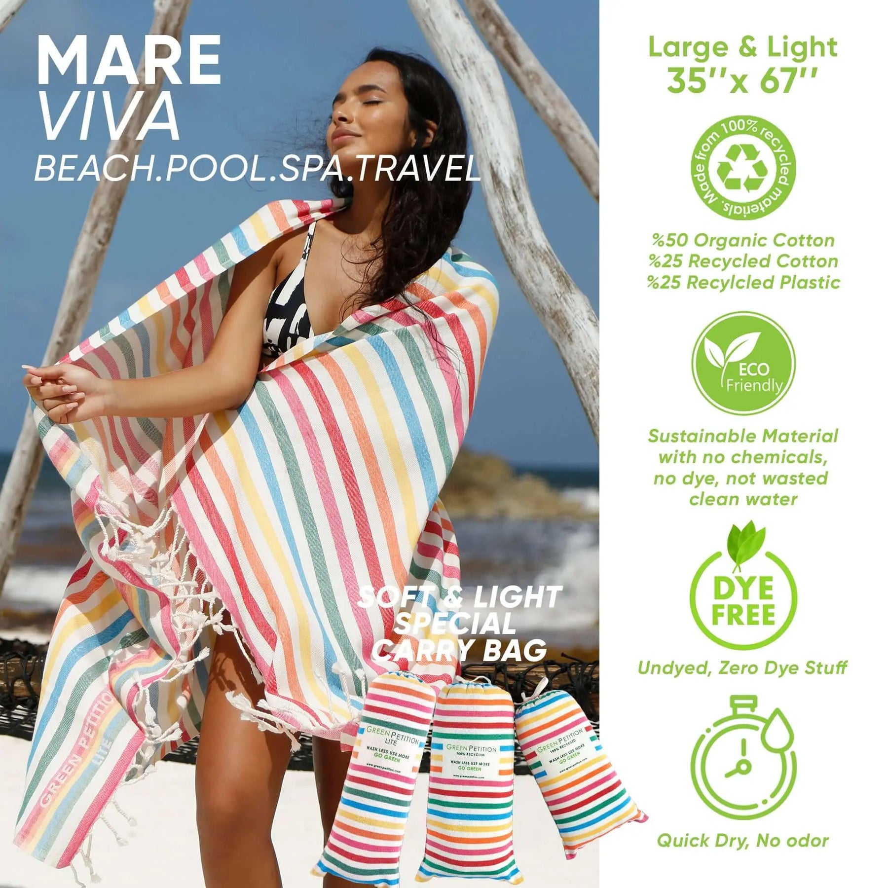 Duradero y respetuoso con el océano: Diseñado para los amantes de la sostenibilidad, el Mare Peshtemal es más que una toalla: es un viaje en el tiempo con su diseño a rayas nostálgico. Fabricado con una mezcla suave del 50 % de algodón orgánico, ofrece una sensación lujosa, destacando el compromiso con la pureza y la calidad. El algodón orgánico se complementa con una mezcla del 25 % de botellas de plástico recicladas y otro 25 % de desechos de camisetas recicladas, lo que promueve la responsabilidad ambiental.